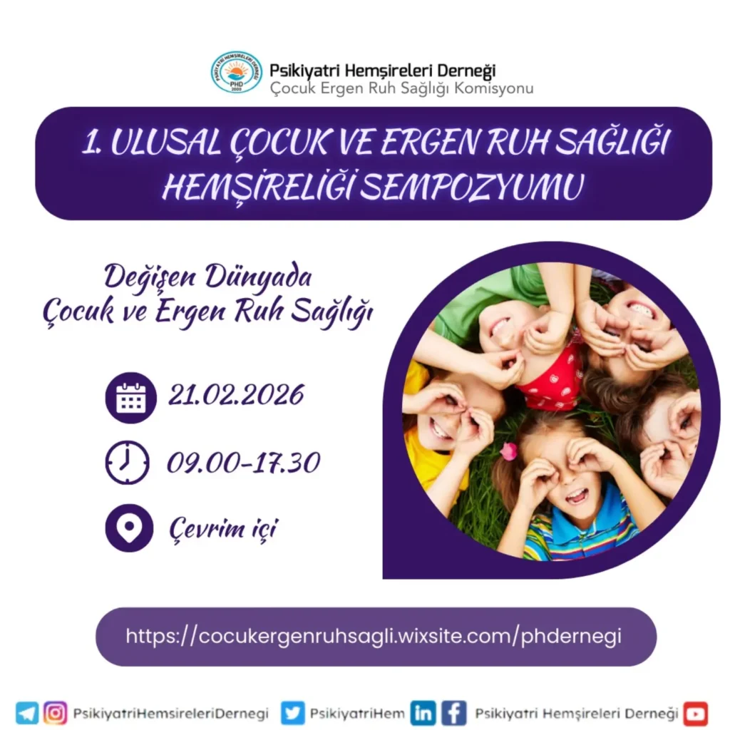Psikiyatri Hemşireleri Derneği Çocuk ve Ergen Ruh Sağlığı Komisyonu tarafından düzenlenen bu önemli bilimsel buluşmaya sizleri davet ediyoruz.